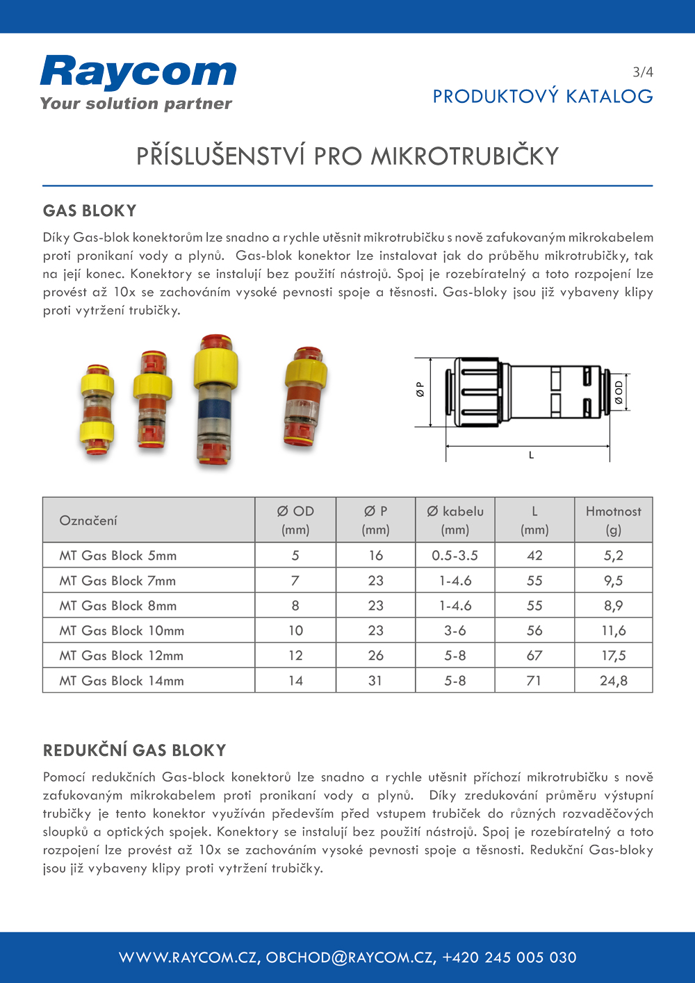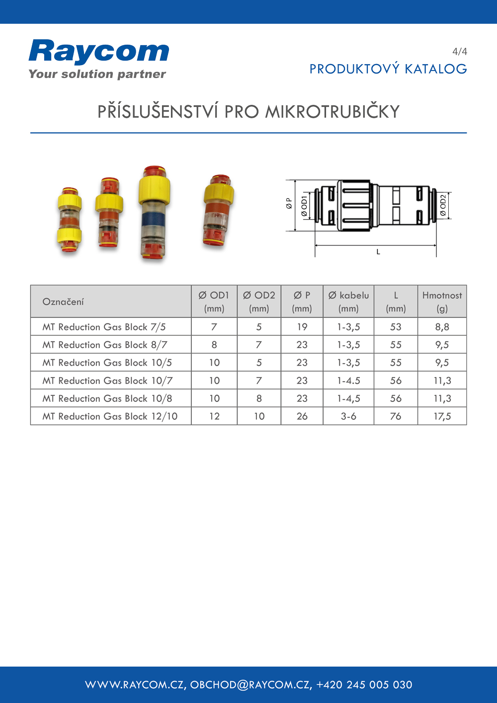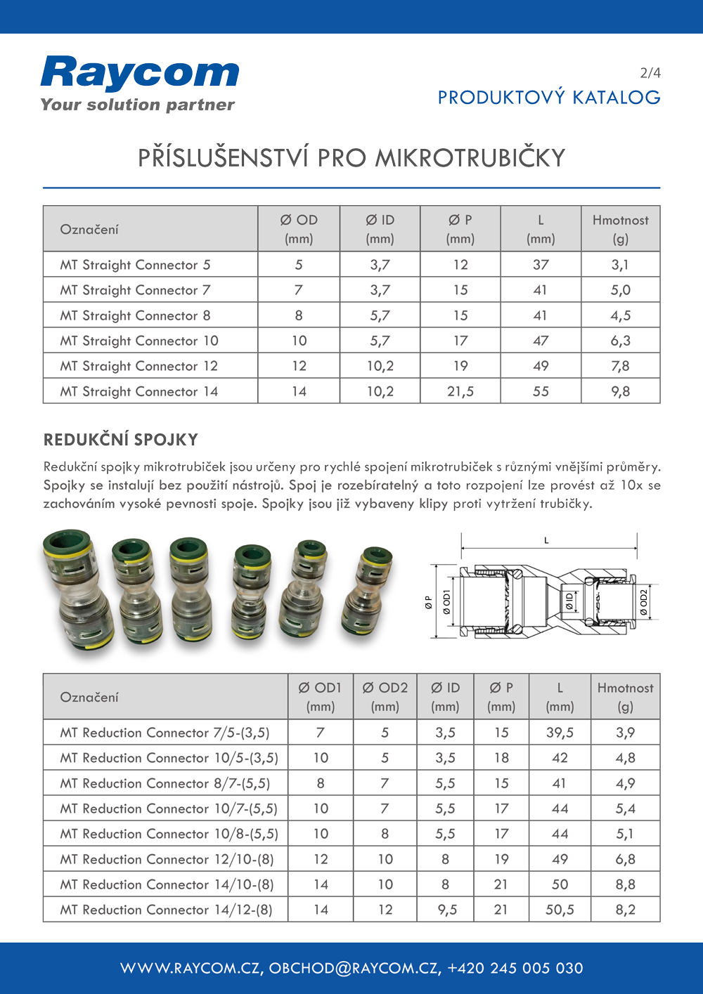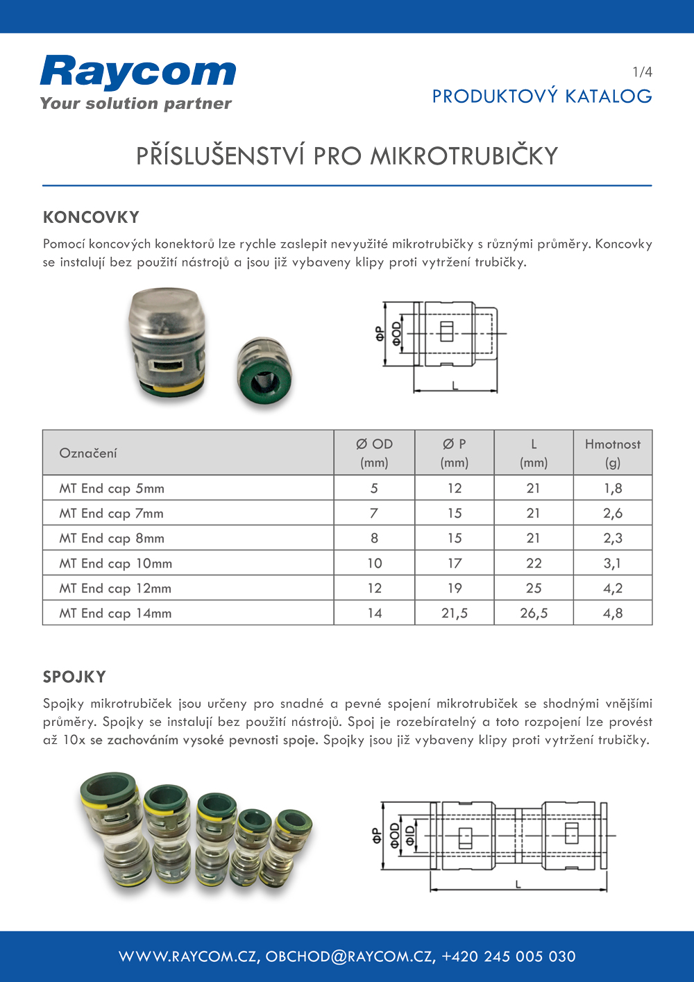 Nabízené varianty a rozměry nejčastěji používaného příslušenství k mikrotrubičkám naleznete v produktovém katalogu. Pro informaci o cenách a dostupnostech prosím kontaktujte obchodní zástupce společnosti Raycom – viz kontakty.